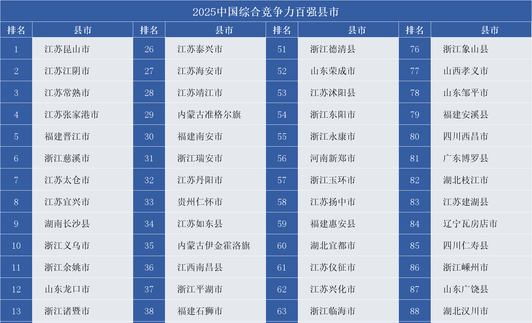 《中国县域发展监测报告2025》发布 中国百强县市、中国百强区名单揭晓
