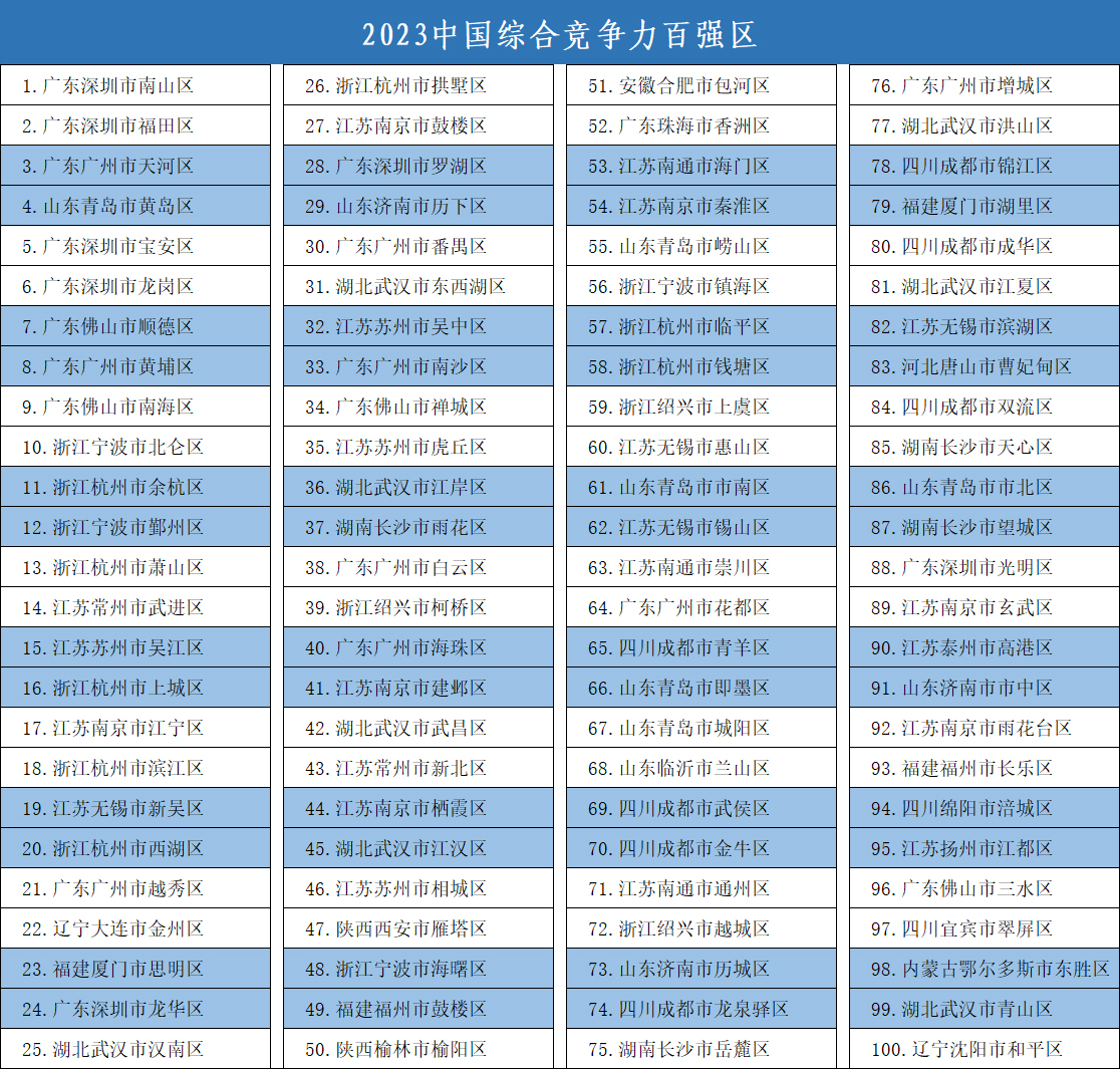 12月12日,竞争力智库等机构在北京发布了《中国县域发展监测报告2023》(以下简称《报告》),《报告》揭晓了“2023中国综合竞争力百强县市”(简称“2023中国百强县市”)、“2023中国综合竞争力百强区”(简称“2023中国百强区”)等名单。